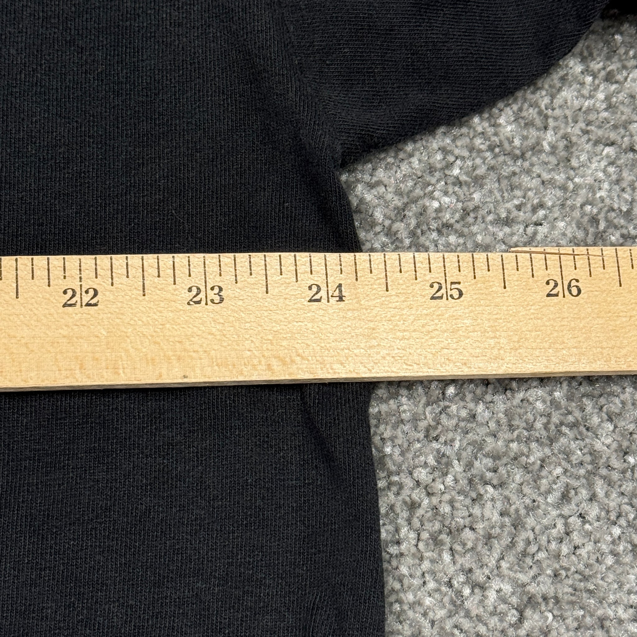 We measure from shoulder to bottom & pit to pit.